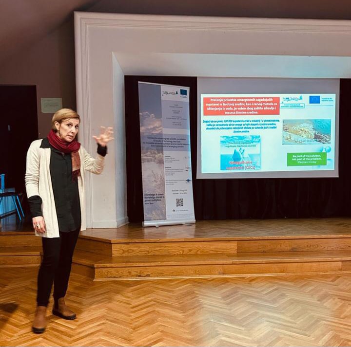 Проф. Ђуришић-Младеновић је кратко представила елементе тзв. „троструке планетарне кризе“ са посебним освртом на могућу улогу дипломираних инжењера технологије у решавању проблема загађења животне средине и климатских промена, наглашавајући значај развоја нових технологија за обраду отпадних вода за потребе уклањања загађујућих супстанци од посебног (емергентног) значаја, што је предмет европског пројекта TwiNSol-CECs, којим руководи Технолошки факултет Нови Сад (www.twinsol-cecs.com), као и производње алтернативних биогорива, која су предмет изучавања, између осталих тема и предмета, у оквиру смерова Нафтно-петрохемијско инжењерство и Еко-енергетско инжењерство.