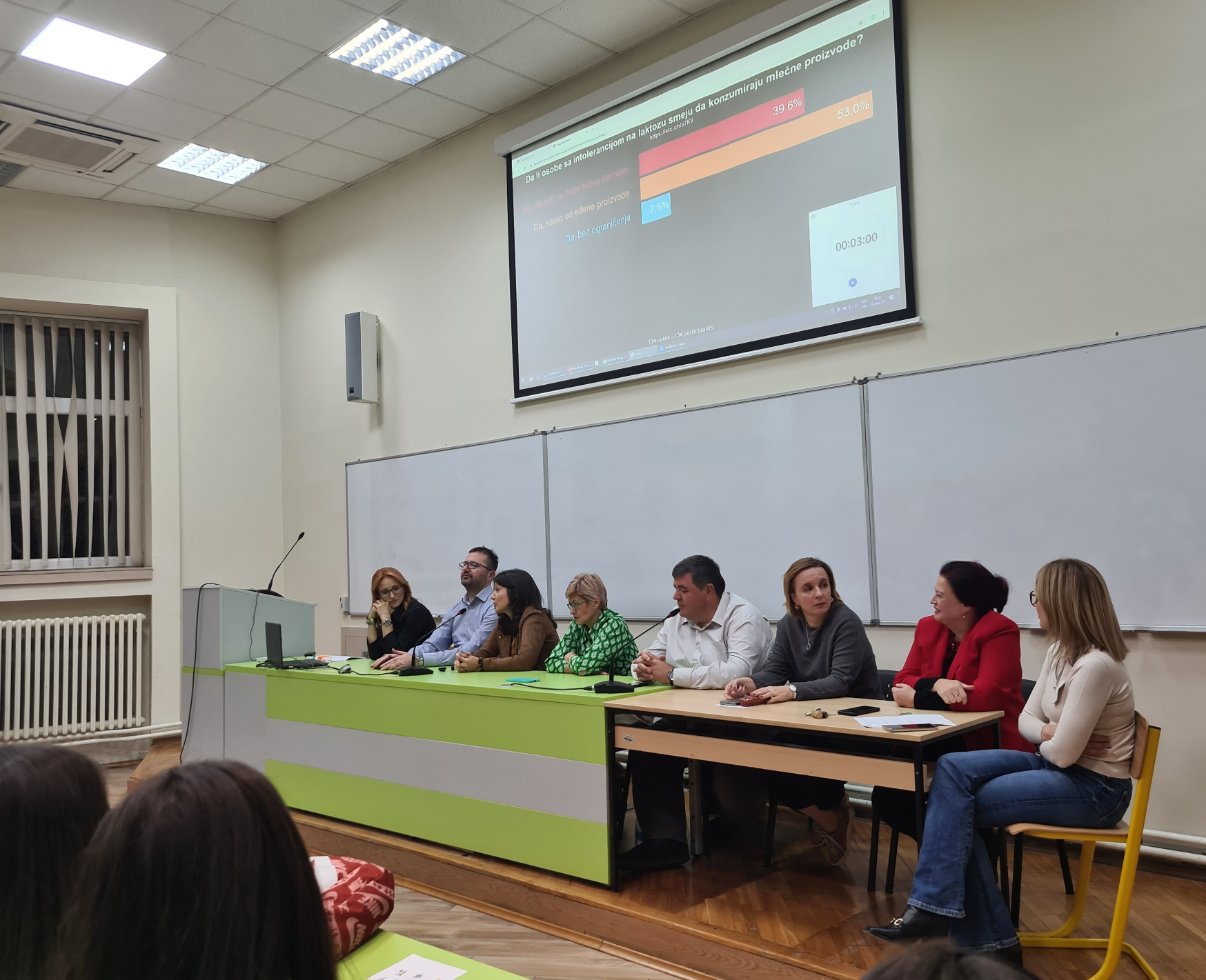 Циљ трибине био је да раздвоји чињенице од заблуда које се пласирају преко Интернета и помогне у препознавању поузданих информација о прехрамбеним производима. Професори студијског програма Прехрамбено инжењерство дискутовали су о најчешћим митовима, полуистинама и погрешним тумачењима који се свакодневно деле на друштвеним мрежама.