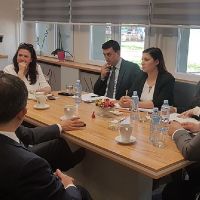 Госте је у Деканату Технолошког факултета примила деканица проф. др Биљана Пајин заједно са проф. др Оскаром Бером и продеканом за наставу проф. др Драганом Говедарицом. Пријему је присуствовала и Анђела Јаћимовић из кабинета министра за иновације и технолошки развој Републике Србије.